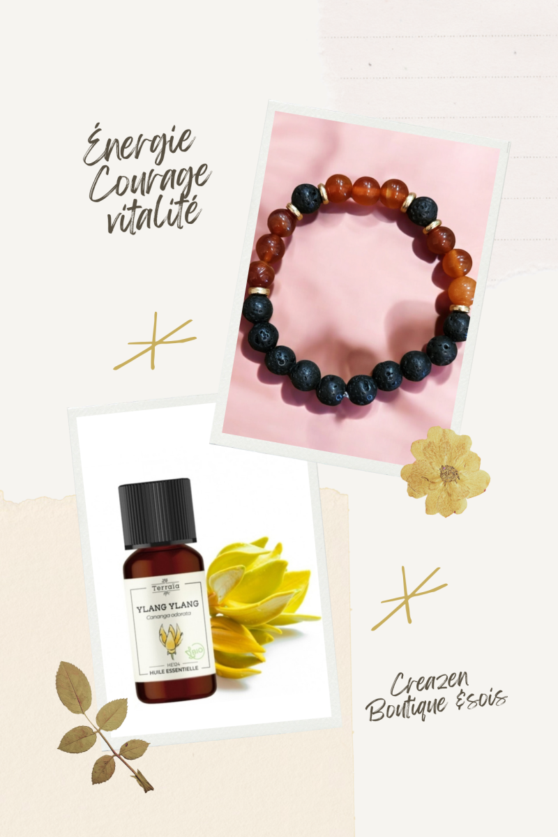 Ajoutez quelques gouttes HE de ylang-ylang sur les perles en pierres de lave